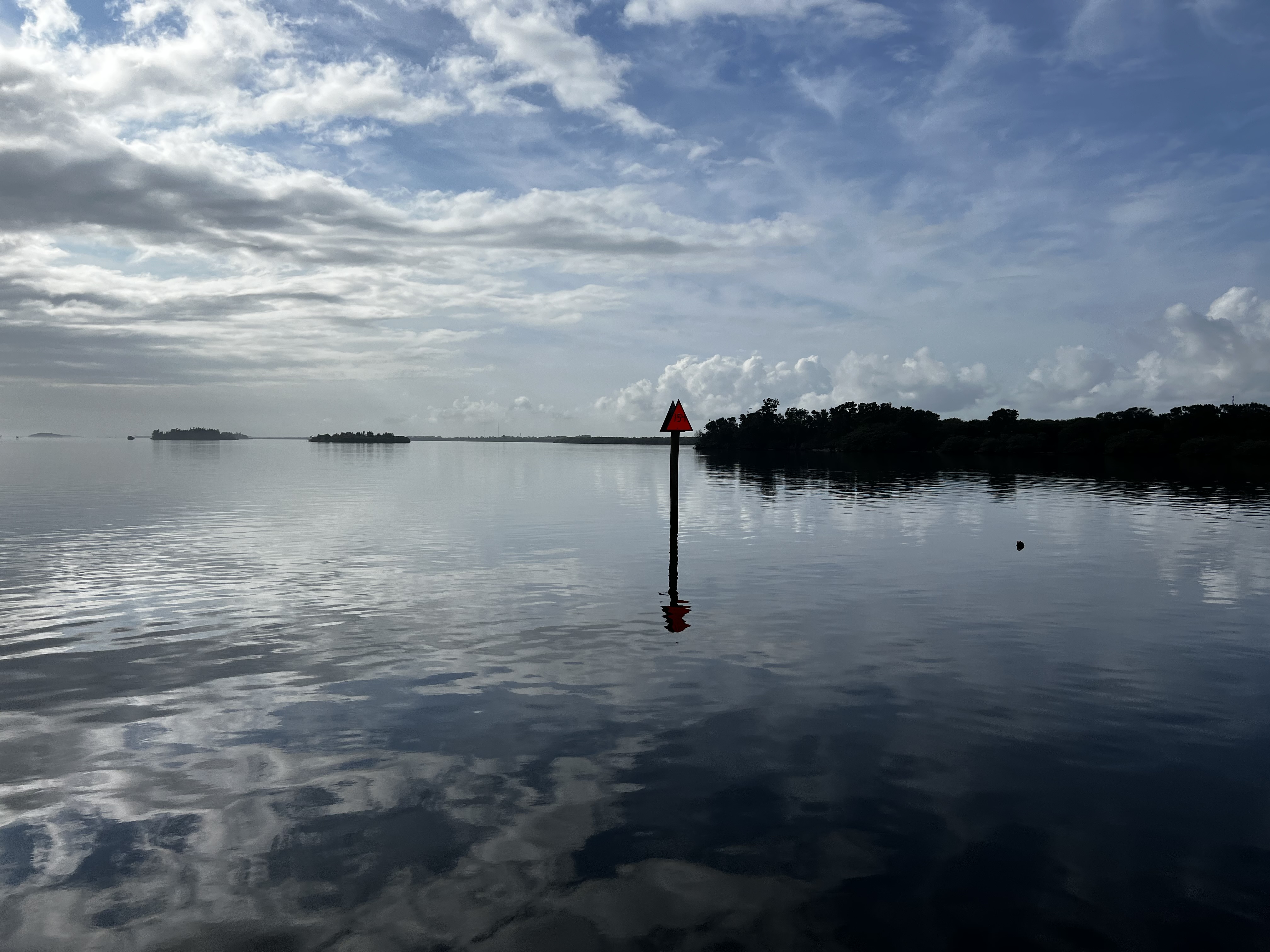 After Daytona it was just more and more bridges every day. In Titusville we anchored just past one and had a beautiful sunset, but the days were long and the water ways were getting busier with more and more motor boats that did not slow down. We did enjoy the anchorage in the Indian River, a wide shallow and slower moving waterway with many spoil Islands. Spoil Islands were by-products of the creation of the many navigable waterways in Florida and created from the dredged material. Today many of these man made islands are nature preserves and parks that can be explored by kayak or canoe and offer campsites. Luckily it was calm, otherwise it would have been difficult to find protection here.