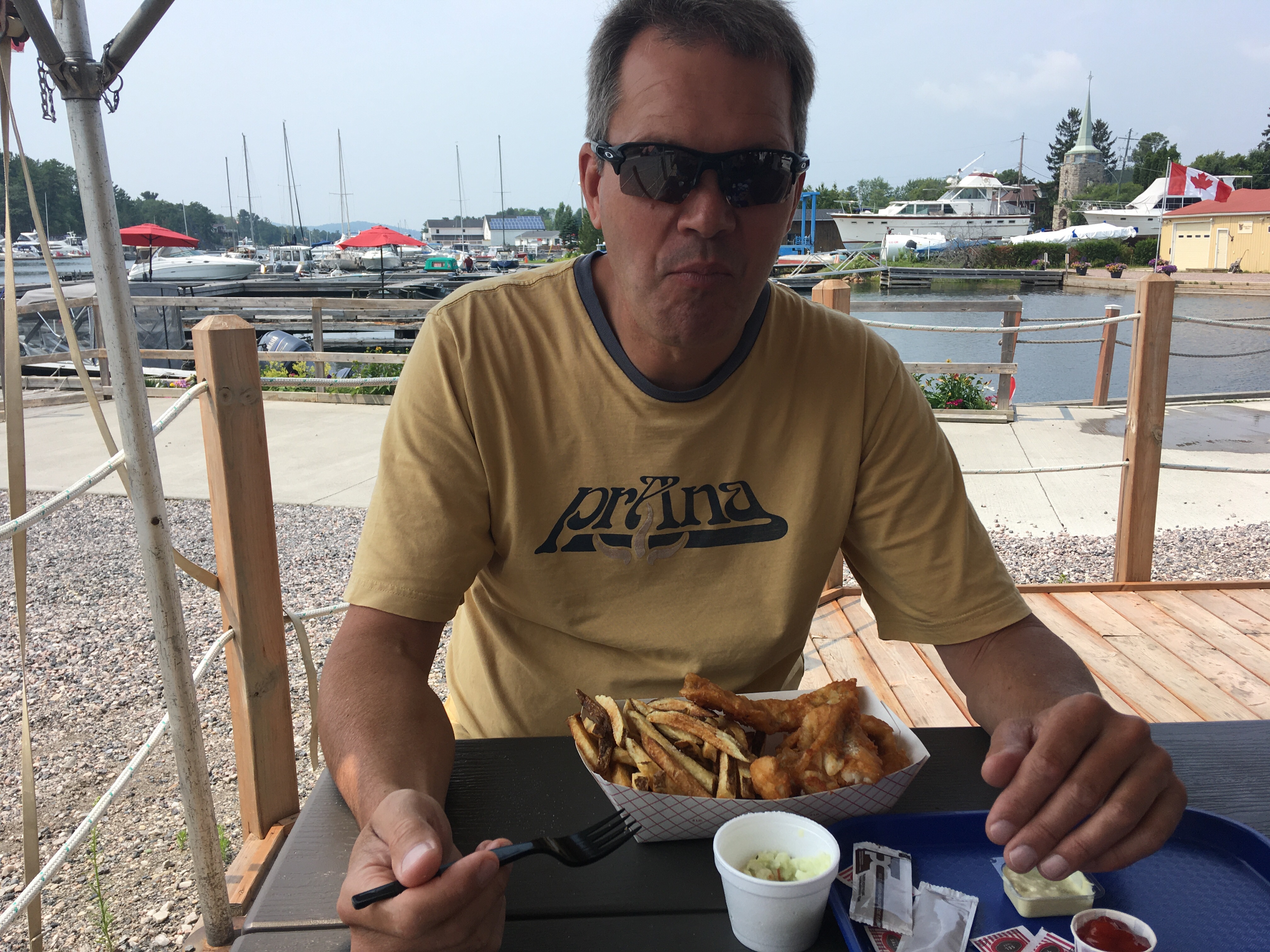 We really liked Fox Island but the next day the winds were favourable for a fast ride East. Killarney was still a must stop for us, especially stopping for Fish and Chips at Herbert’s, which we had done multiple times after our interior canoe trips years ago. It was the best Fish & Chips we had eaten anywhere. Not sure if that was just because we had been eating rehydrated food all week while canoeing.